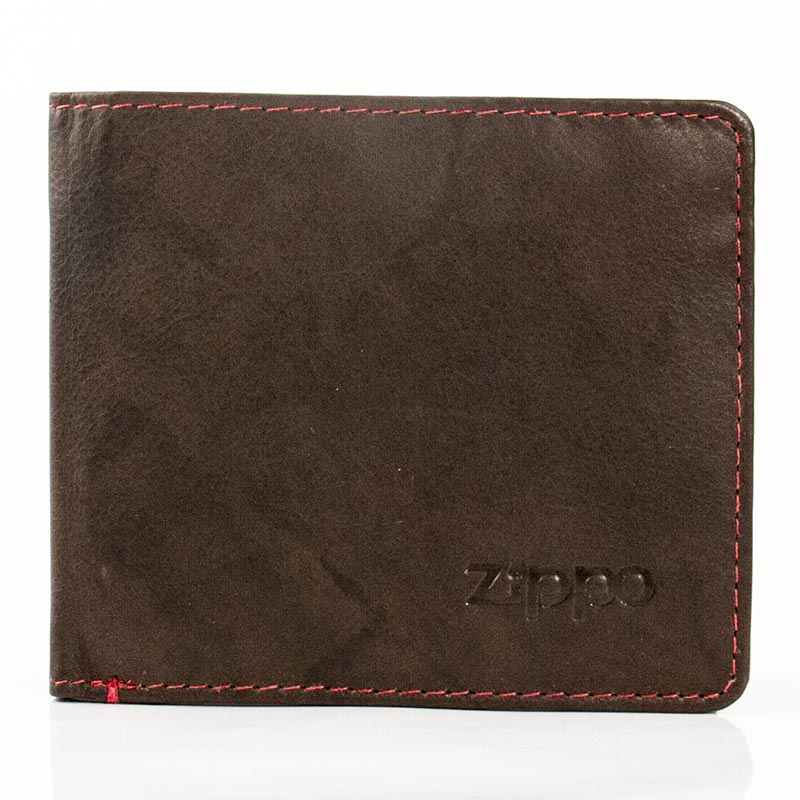 Zippo Herren-Geldbeutel Leder quer Mocca rote Steppnaht